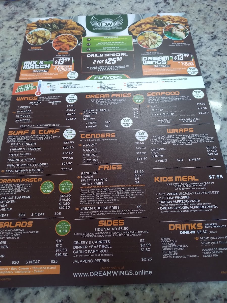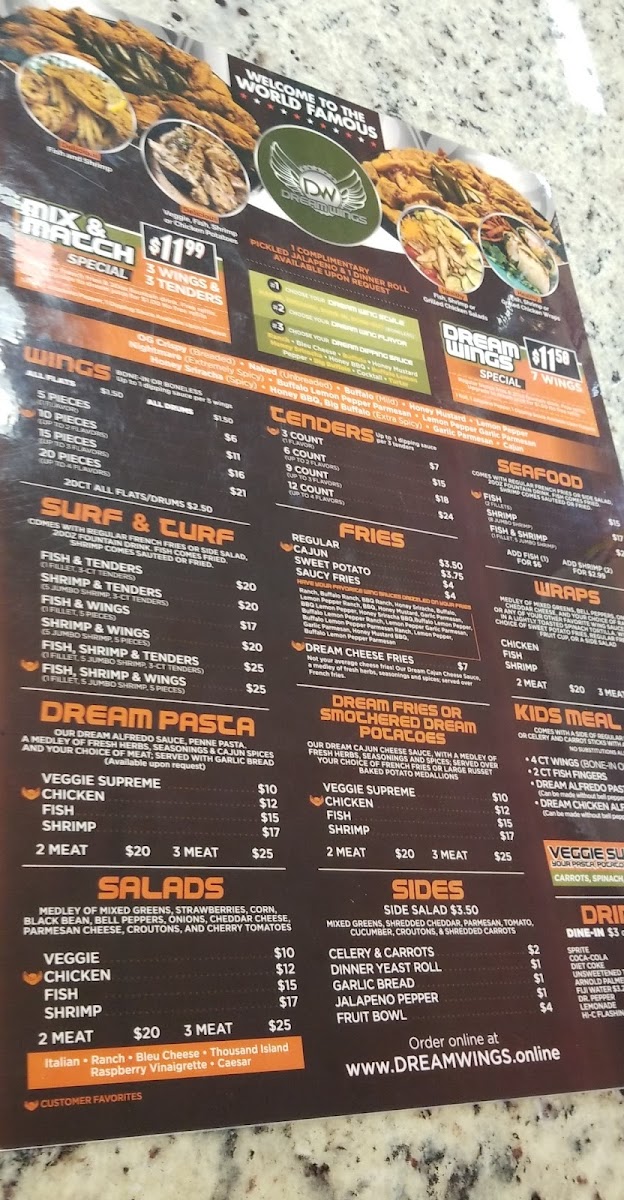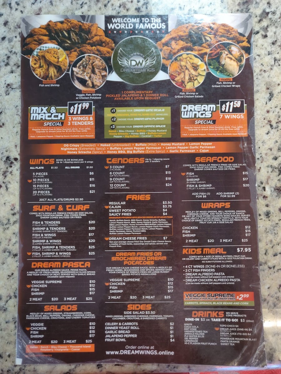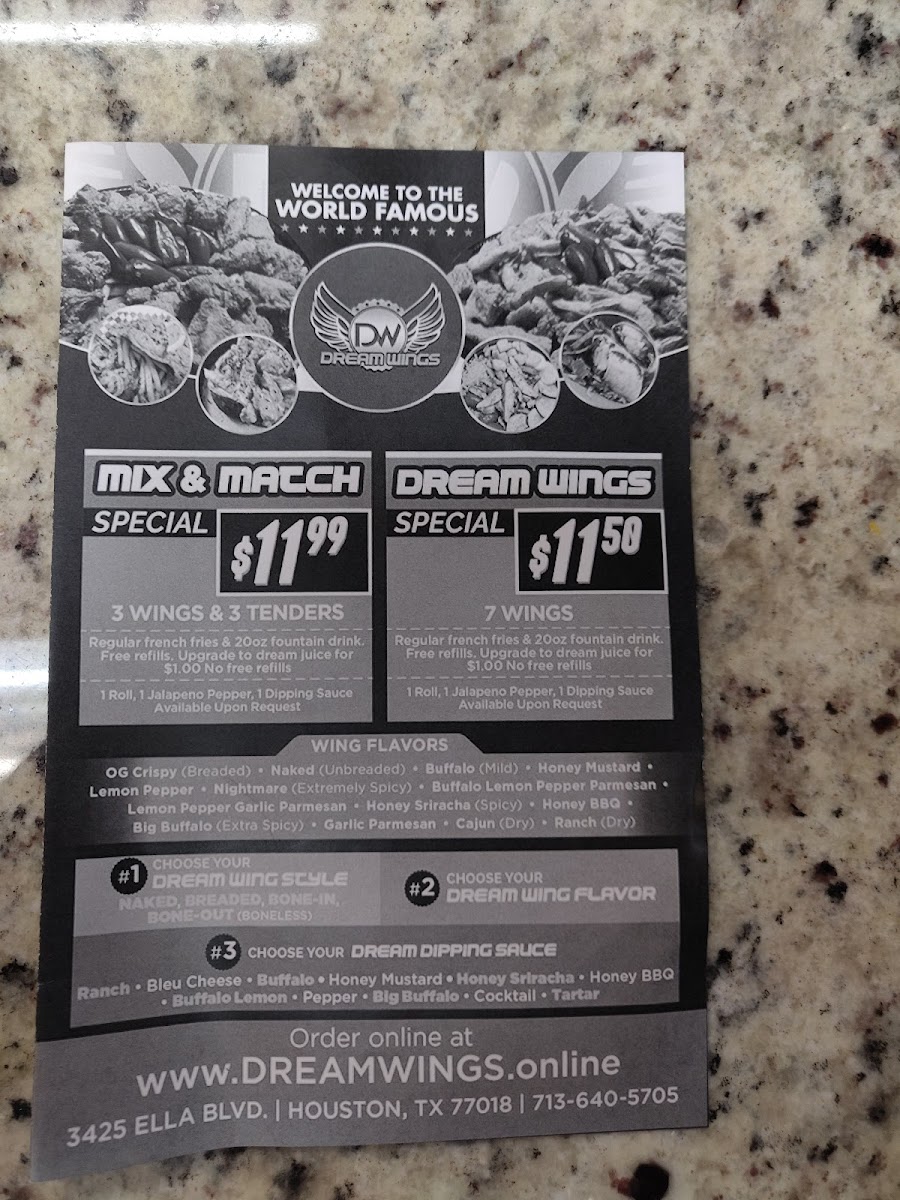 Welcome to Dream Wings Patio & Food Truck, a hidden gem located on Ella Blvd in Houston, Texas. This vibrant food truck offers a tantalizing menu centered around crispy chicken wings, promising flavors that invigorate the palate. You can savor their succulent handcrafted tenders, available in various portions, or dive into soothing daily specials featuring bone-in wings and boneless options. For the adventurous, try the Mix ’N Match Special for a flavorful experience.