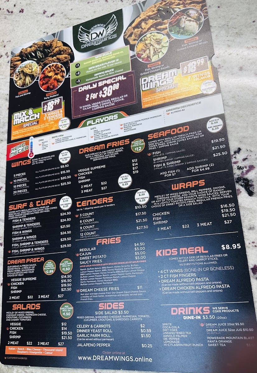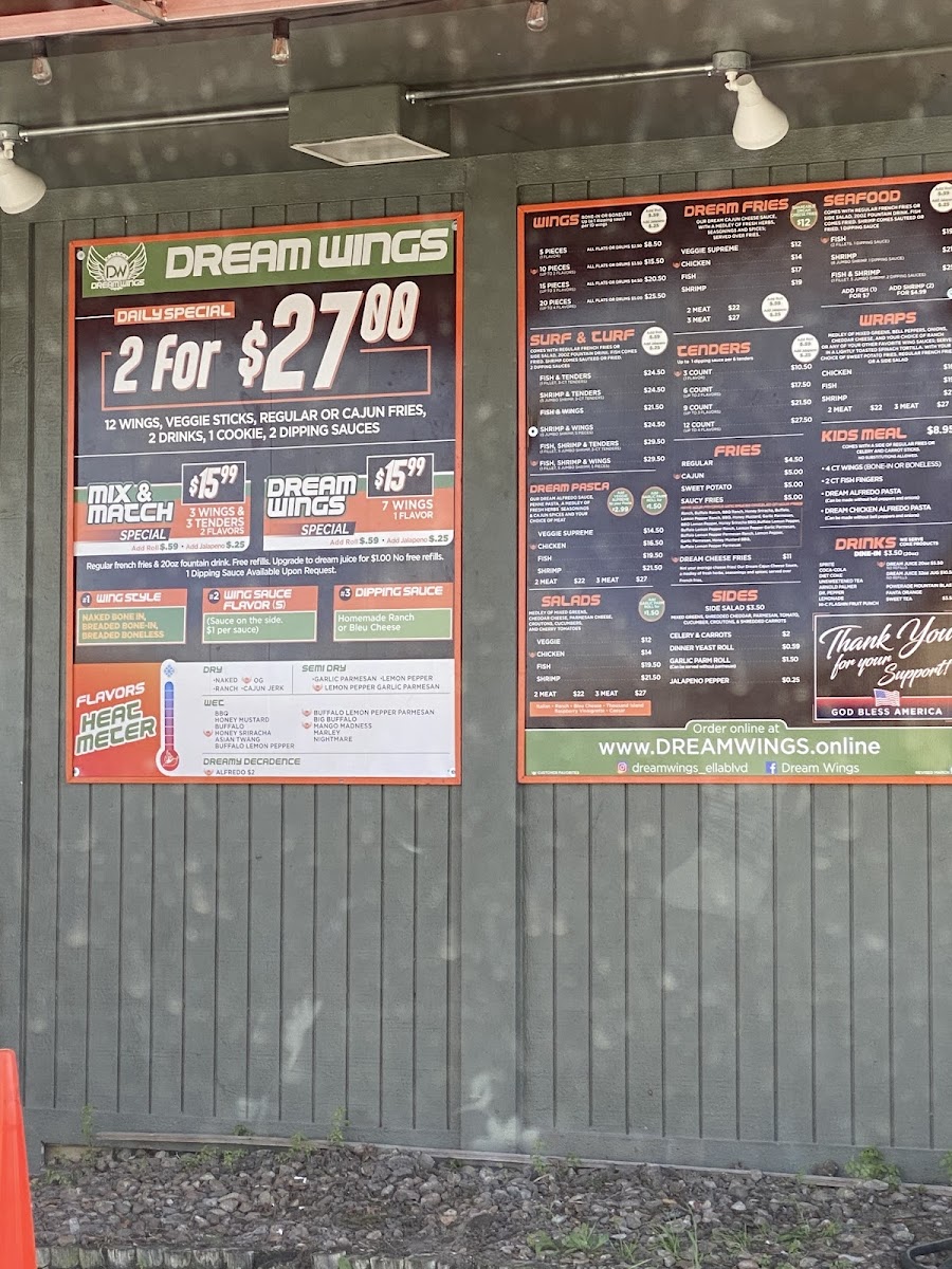 Dream Wings Patio & Food Truck Menu